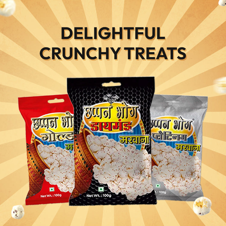 Operating since 1980, Chappan Bhog offers India's No. 1 quality makhana, available in various packaging sizes nationwide. Our products are free from preservatives and artificial colors, undergo rigorous lab tests, and are carefully sorted to ensure purity and quality.