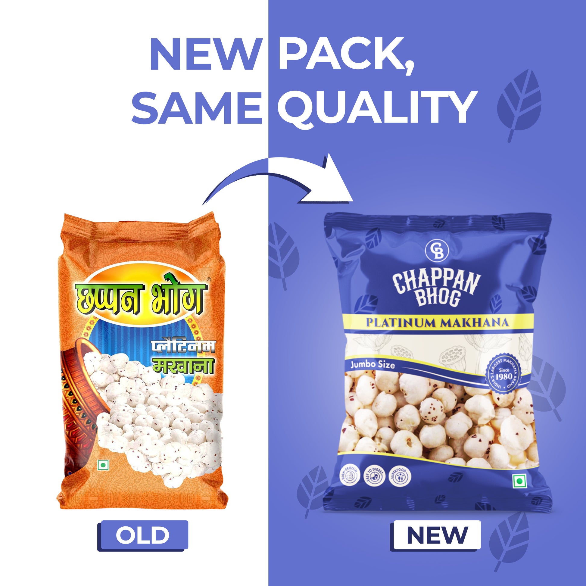 INDIA’S NO. 1 MAKHANA BRAND: Trusted by over 4 crore households, Chappan Bhog offers premium Silver, Gold, and Platinum makhana in multiple pack sizes. Established in 1980, we are one of India’s oldest and largest brands, sourcing from 10,000+ farmer families using traditional methods. With 2 billion+ consumers and 25% market share, Chappan Bhog blends quality, trust, and community impact in every bite.
