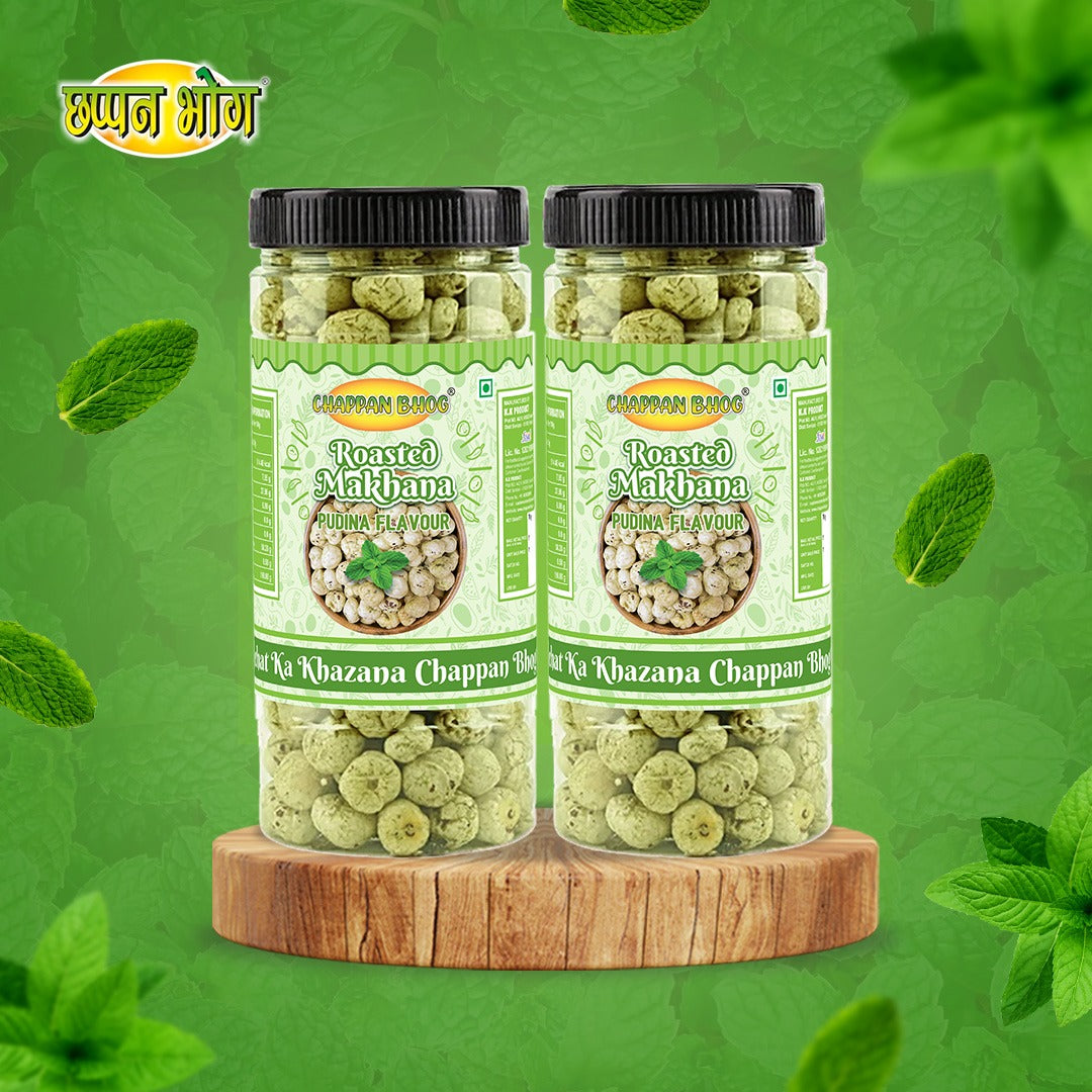Experience the refreshing taste of our Pudina Roasted Makhana. These crunchy, flavorful snacks are made with premium-quality fox nuts, roasted to perfection, and coated with a zesty pudina seasoning. Every bite is a burst of flavor that will leave you wanting more.